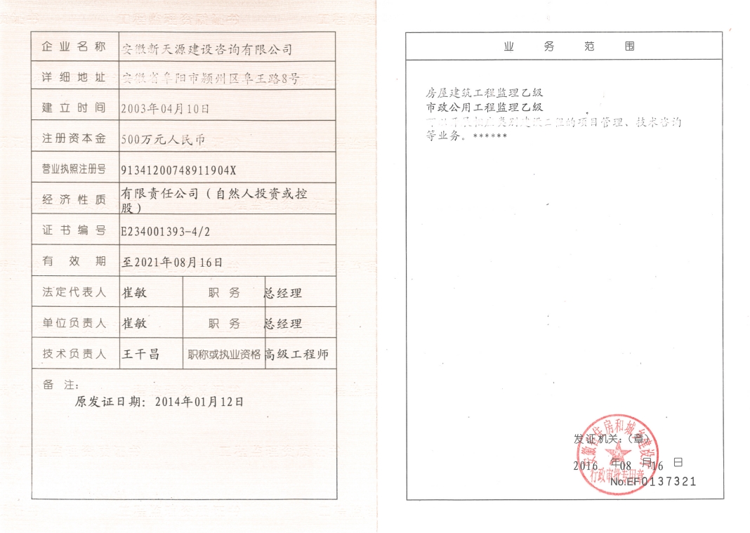 房建、市政監(jiān)理乙級(jí)證書(shū)