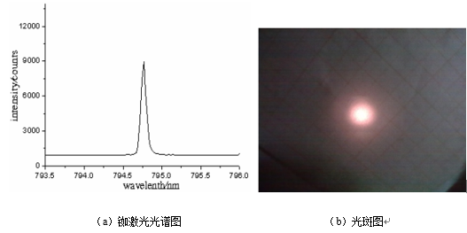 電子所是在國內(nèi)率先開展DPAL研究工作的單位之一,2012年5月,電子所實現(xiàn)了半導(dǎo)體泵浦線偏振基模銣激光輸出,經(jīng)繼續(xù)對實驗進行改進,獲得了最高2.8W的銣激光輸出,光光轉(zhuǎn)換效率達21%。實驗光路如圖2-7所示,實驗測量的銣激光光譜以及光斑如圖2-8所示。