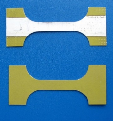 (3)安全性測試:將如圖3-4所示的經(jīng)過激光除漆和未除漆的兩組樣品分別編號,采用美國MTS公司810型材料試驗系統(tǒng)對兩組樣品首先進行材料拉伸試驗。在最能反映材料強度的抗拉強度一項,除漆組樣品的平均值為399.6 Mpa,未除漆組的平均值為399.3 Mpa,兩組幾乎沒有差別。