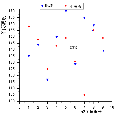 最后采用顯微硬度計,測量樣品除漆前后的維氏硬度(HV)。測量結(jié)果如圖3-7所示,可以發(fā)現(xiàn),在高于均值的樣品中,除漆的有5個,未除漆的有6個,并且分布表現(xiàn)出無規(guī)律性,所以飛機蒙皮經(jīng)過激光除漆后維氏硬度并沒有明顯差別。