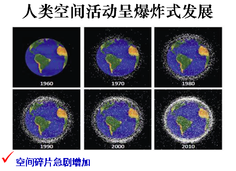 當(dāng)前,有各種飛行器在空間運(yùn)行,空間充滿了飛行器、衛(wèi)星、退役產(chǎn)生的碎片。從下面的圖中可以看到,在1960年和2010年間,地球表面飛行物的比較,在2010年的地球空間充滿了太多的飛行物等。