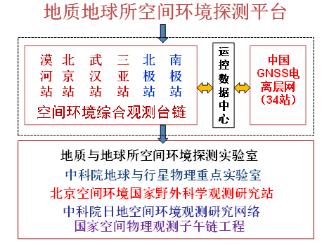 地質(zhì)地球所建立了空間環(huán)境探測平臺,有一個觀測臺鏈,在國內(nèi)最北邊的漠河,往南有北京和武漢,最南邊有三亞等觀測站,另外在北極的黃河站和南極的中山站都建有臺站觀測。目前國內(nèi)通過GPS衛(wèi)星觀測的,已有34個觀測點(diǎn),地質(zhì)地球所建有數(shù)據(jù)控制中心。