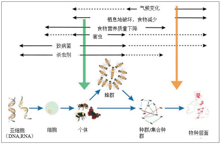 圖3 各種環(huán)境因素對傳粉昆蟲的各個層面的影響