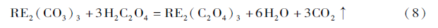 稀土沉淀過(guò)程使用沉淀劑進(jìn)行沉淀轉(zhuǎn)型和進(jìn)一步除去雜質(zhì),典型的沉淀劑為草酸(H2C2O4)。其反應(yīng)為: