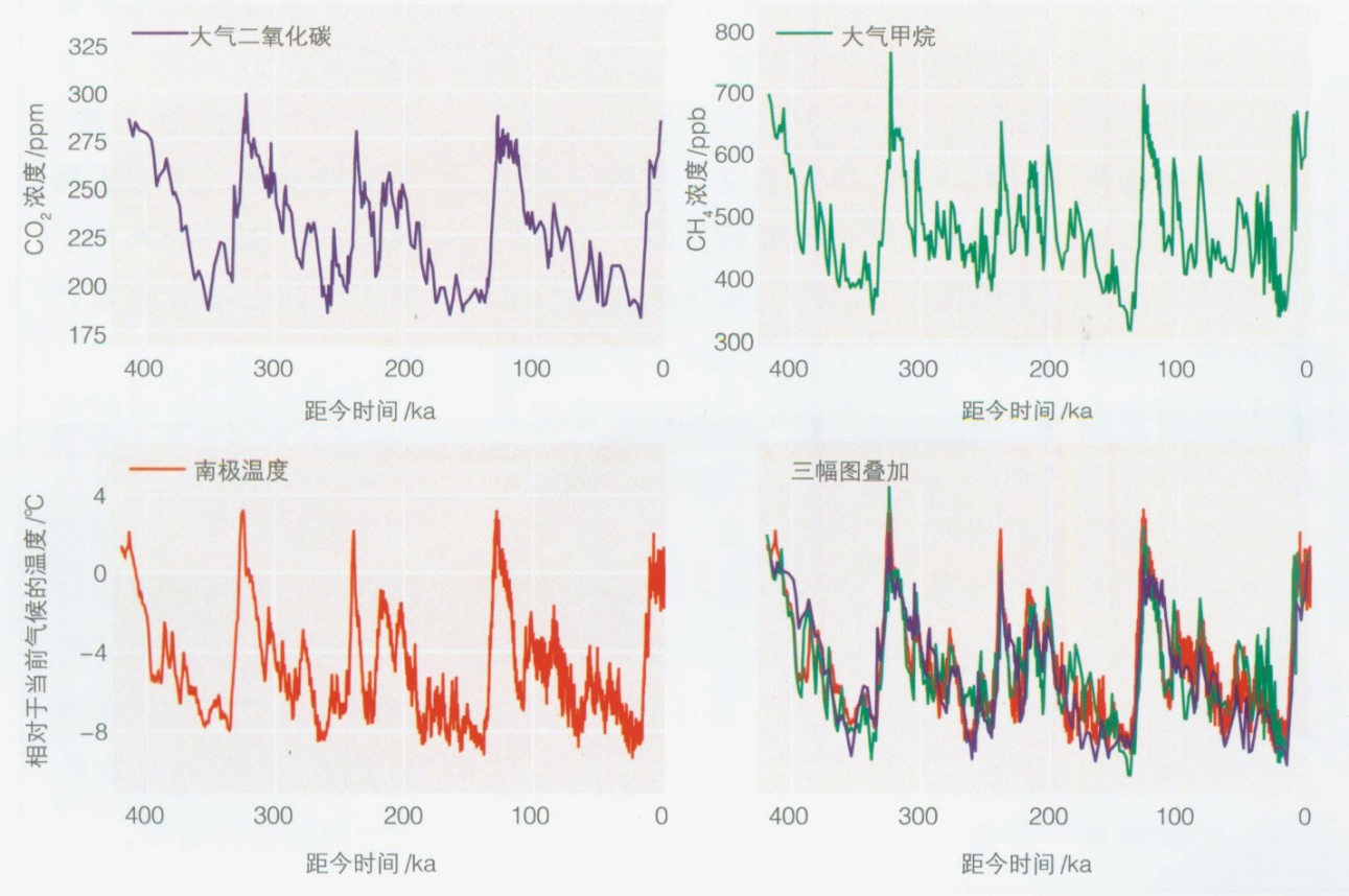 圖3 根據(jù)冰芯記錄得出的氣候變化數(shù)據(jù)(時間尺度為千年)